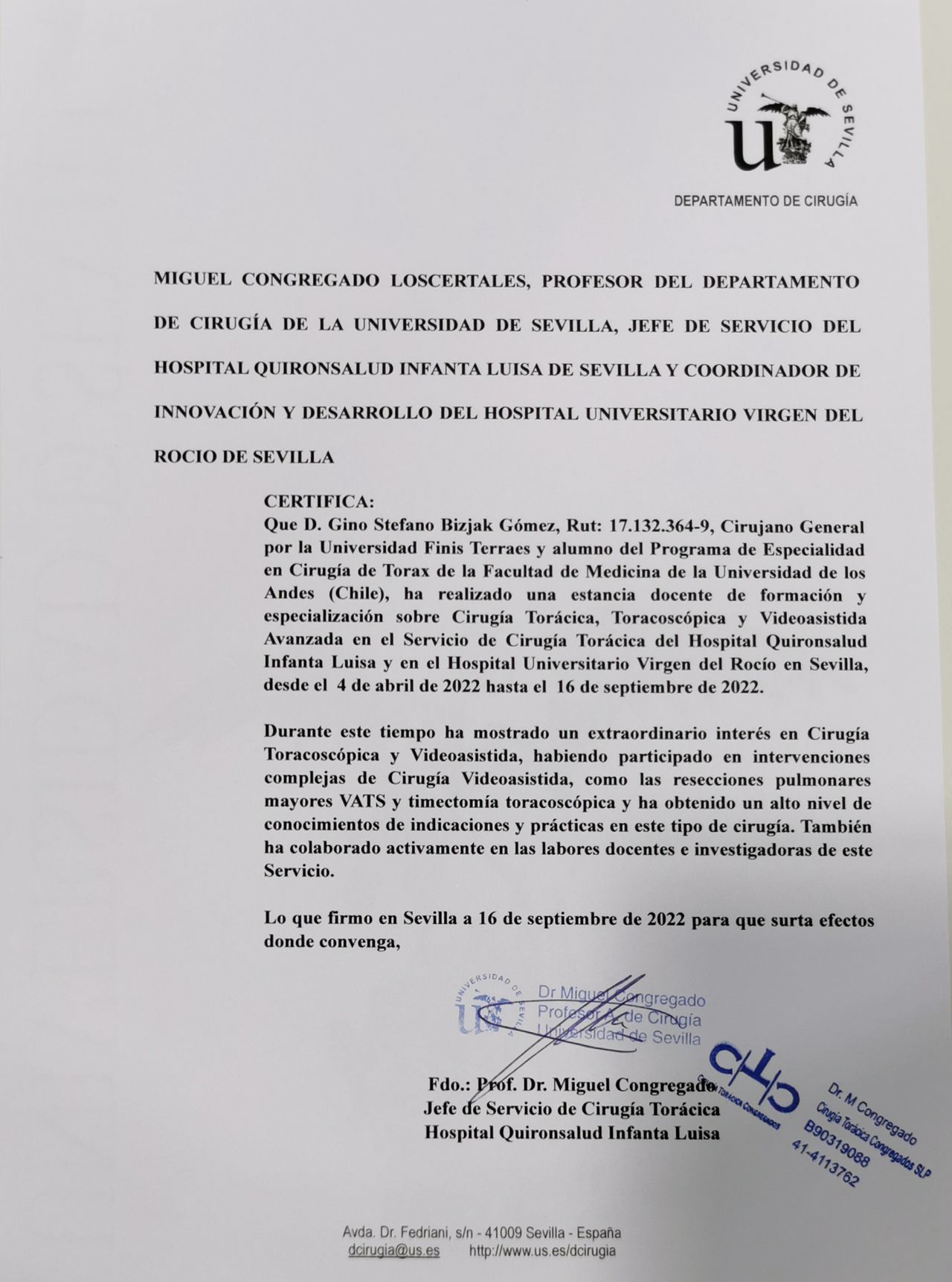 - Universidad de Sevilla. España, 2022 - Cirugía torácica minimamente invasiva.